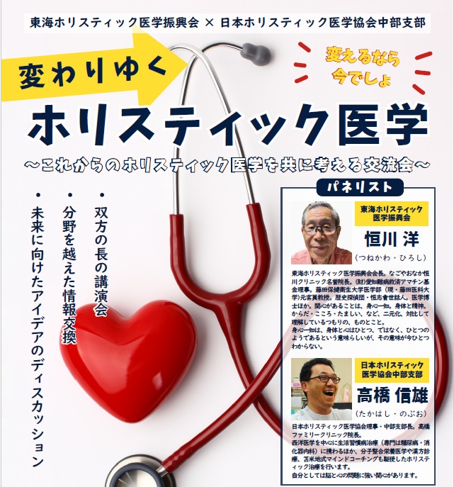 全国の講演会・セミナー シンポジウム、講演会、セミナー、ワークショップを全国で開催しております。 全国一覧 テーマ・カテゴリーで探す 交流会 社会医学 植物療法 ホリスティックヘルス スピリチュアルケア 思想哲学 エネルギー医学 がん からだのケア ホリスティック医学観 ライフスタイル こころのケア 補完代替療法 食と栄養 セルフケア シンポジウム その他 医療塾 研究会 ホリスティック医学観 オンライン、本部・関東 開催日: 2026年01月12日 開催場所:zoom やさしいホリスティック医学教室(1/12) ホリスティックヘルス オンライン、本部・関東 開催日: 2025年12月14日 開催場所:東京 or Zoom パーソナルカラーで育む自己受容-私らしさを活かす-(12/14) セルフケア 関西支部 開催日: 2025年12月14日 開催場所:大阪 眠りの量と質を整える~ 眠りの量と質を整える(12/14) エネルギー医学、研究会 オンライン、本部・関東 開催日: 2025年12月06日 開催場所:東京 or Zoom 量子物理学とエネルギー連続講座・第2回『バイブレーショナルメディスン』と 『エネルギー医学の原理』における量子物理学(12/6) 交流会 中部支部 開催日: 2025年10月25日 開催場所:名古屋 変わりゆくホリスティック医学~これからのホリスティック医学を共に考える交流会(10/25) セルフケア 関西支部 開催日: 2025年10月19日 開催場所:大阪 暮らしの中の漢方養生~自分でできる小さな不調の改善法(10/19) エネルギー医学、研究会 オンライン、本部・関東 開催日: 2025年10月04日 開催場所:東京 or Zoom 量子物理学とエネルギー連続講座・第1回 「量子物理学」と「量子生物学」のエネルギー観(10/4) 社会医学、研究会 オンライン 開催日: 2025年10月05日 開催場所:Zoom 社会医学研究会 『健康格差社会 何が心と健康を蝕むのか』を読みとく~社会ありようと健康を探る 第2回(10/5) 食と栄養 中部支部 開催日: 2025年09月25日 開催場所:名古屋 変わりゆく食養生 ~今、本当にいい食事とは(9/25) ホリスティックヘルス オンライン、本部・関東 開催日: 2025年09月21日 開催場所:東京 or Zoom 自然観察~あるがままの自然を知り、楽しむ~人にも地球にもやさしい究極の健康法!(9/21) 植物療法、研究会 オンライン 開催日: 2025年08月31日 開催場所:Zoom ホリスティックな植物療法とは(8/31) その他 オンライン、中部支部 開催日: 2025年07月24日 開催場所:zoom 中部支部「症例検討会」(7/24) セルフケア 関西支部 開催日: 2025年07月20日 開催場所:大阪 こころにやさしいタッチケア~エサレン研究所の歴史とセルフタッチング体験~(7/20) エネルギー医学、研究会 オンライン、本部・関東 開催日: 2025年07月20日 開催場所:東京 or Zoom エネルギー医学フォーラム'25「エネルギー医学」と「宗教」を巡って(7/20) 12345Next